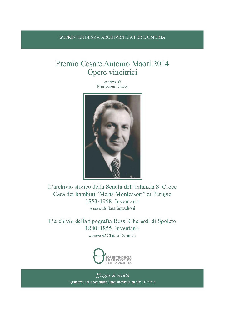 Martedì 12 maggio 2015 alle ore 10.00, presso la Soprintendenza archivistica dell’Umbria e delle Marche - sede di Perugia, verrà presentato il volumePremio Cesare Antonio Maori 2014. Opere vincitrici”. La presentazione del volume sarà affidata a Francesca Ciacci, Soprintendenza archivistica dell’Umbria e delle Marche, dopo i saluti di benvenuto di Mario Squadroni, Soprintendente archivistico dell’Umbria e delle Marche e Andrea Maori, Presidente della commissione del Premio Cesare Antonio Maori. Saranno presenti, inoltre, le autrici del volume.